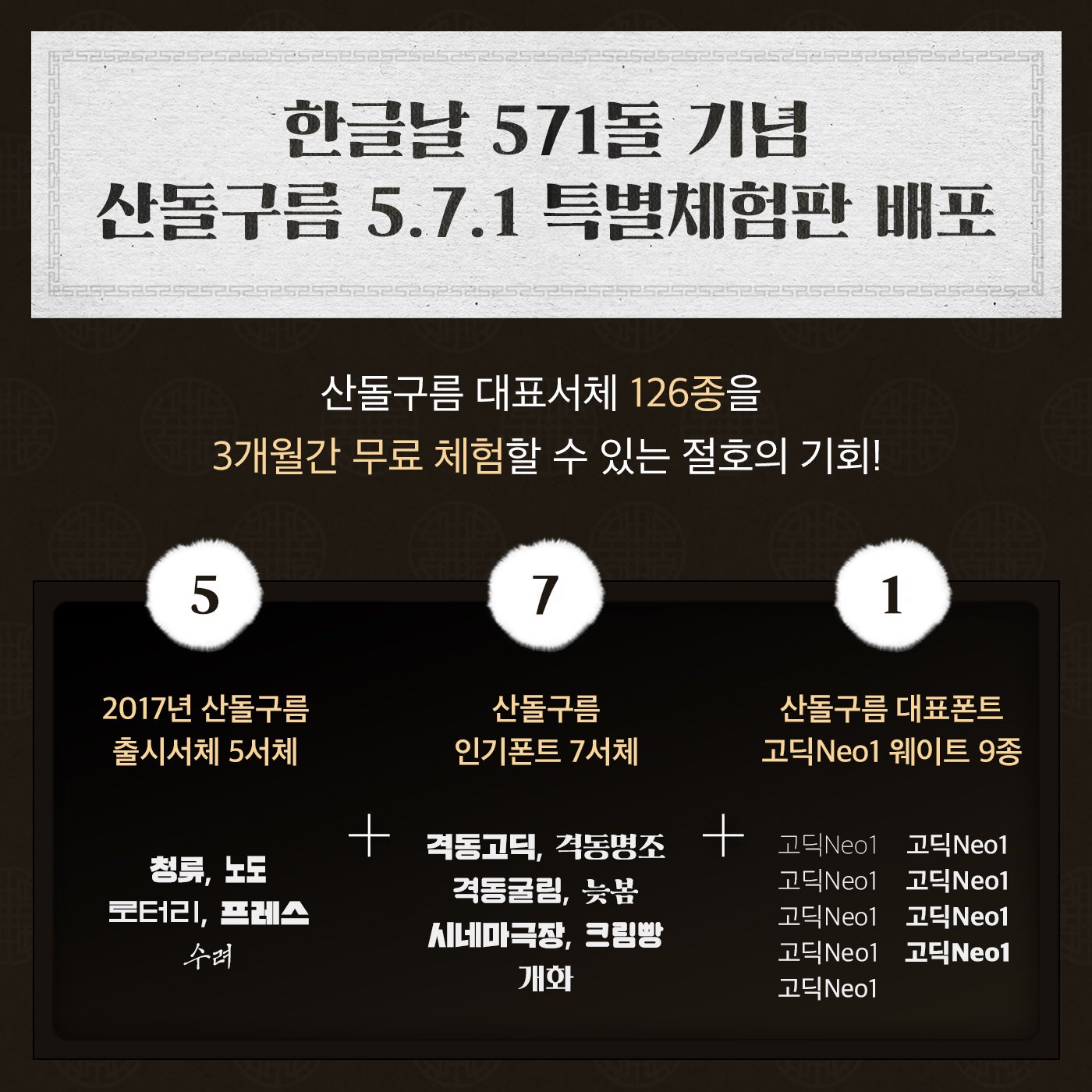 한글날맞이 폰트이벤트 산돌네오시리즈 1년 무료 산돌폰트이벤트 네이버 블로그